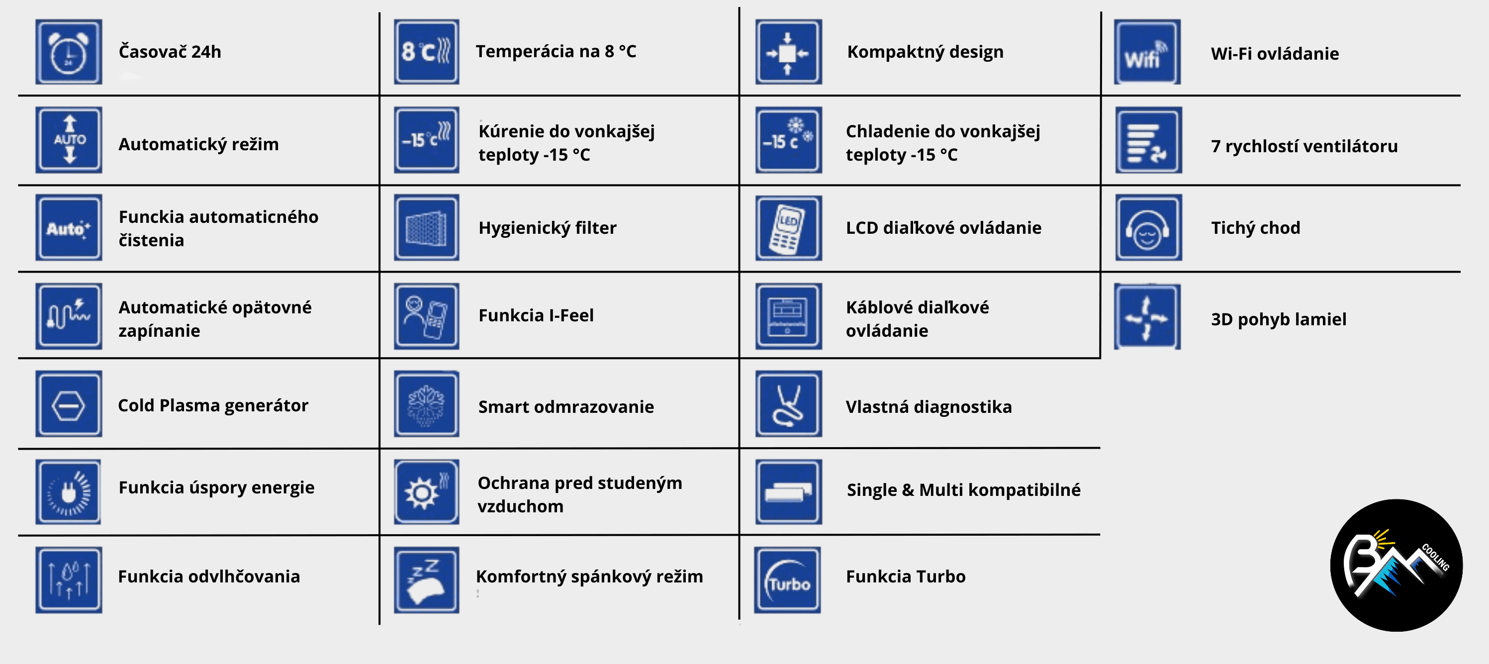 Použité chladivo R-32 je ekologické a energeticky vysoko účinné, čím znižuje spotrebu energie a dopad na životné prostredie. Celoročná účinnosť chladenia a vykurovania dosahuje hodnotenie A++, čo zaručuje úspornú prevádzku bez kompromisov v komforte.