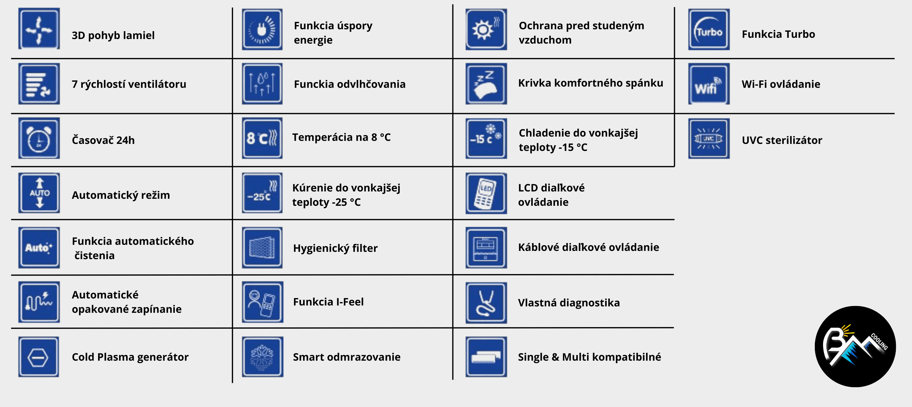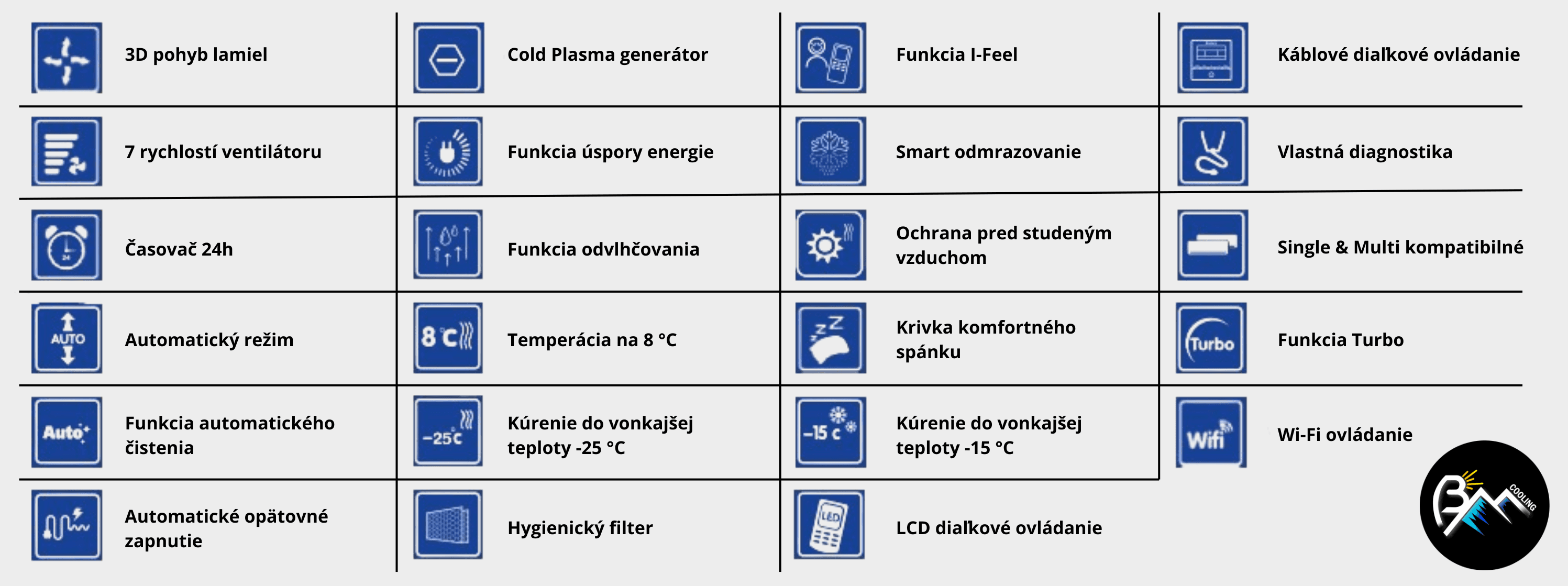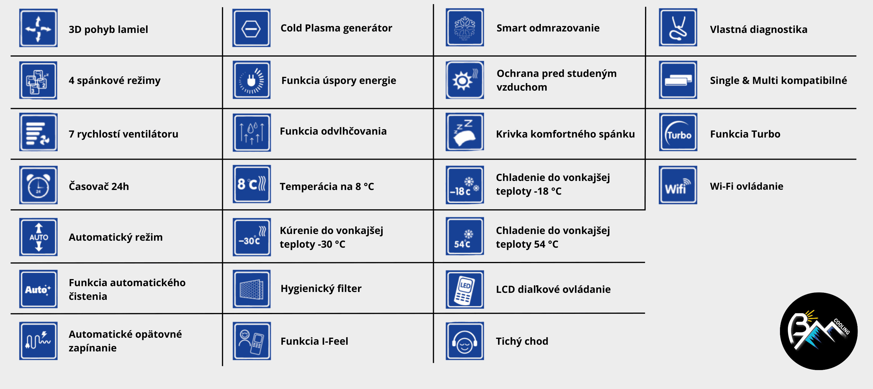Použité chladivo R32 je ekologické a energeticky efektívne, čo znižuje spotrebu energie a má menší vplyv na životné prostredie. Okrem diaľkového ovládania pomocou infračerveného ovládača môžete klimatizáciu spravovať aj hlasom, čím si zabezpečíte maximálnu flexibilitu.